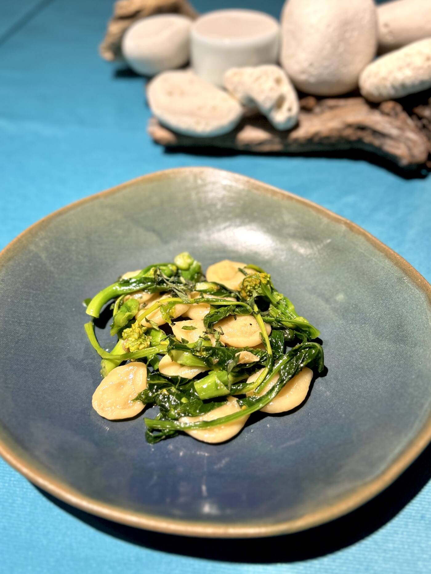 食材は引き続き冬野菜を中心にしています。今月は春へ移り変わりを意識した菜花、それに合わせた手打ちパスタのオレキエッテが登場しています。是非ご賞味くださいませ。