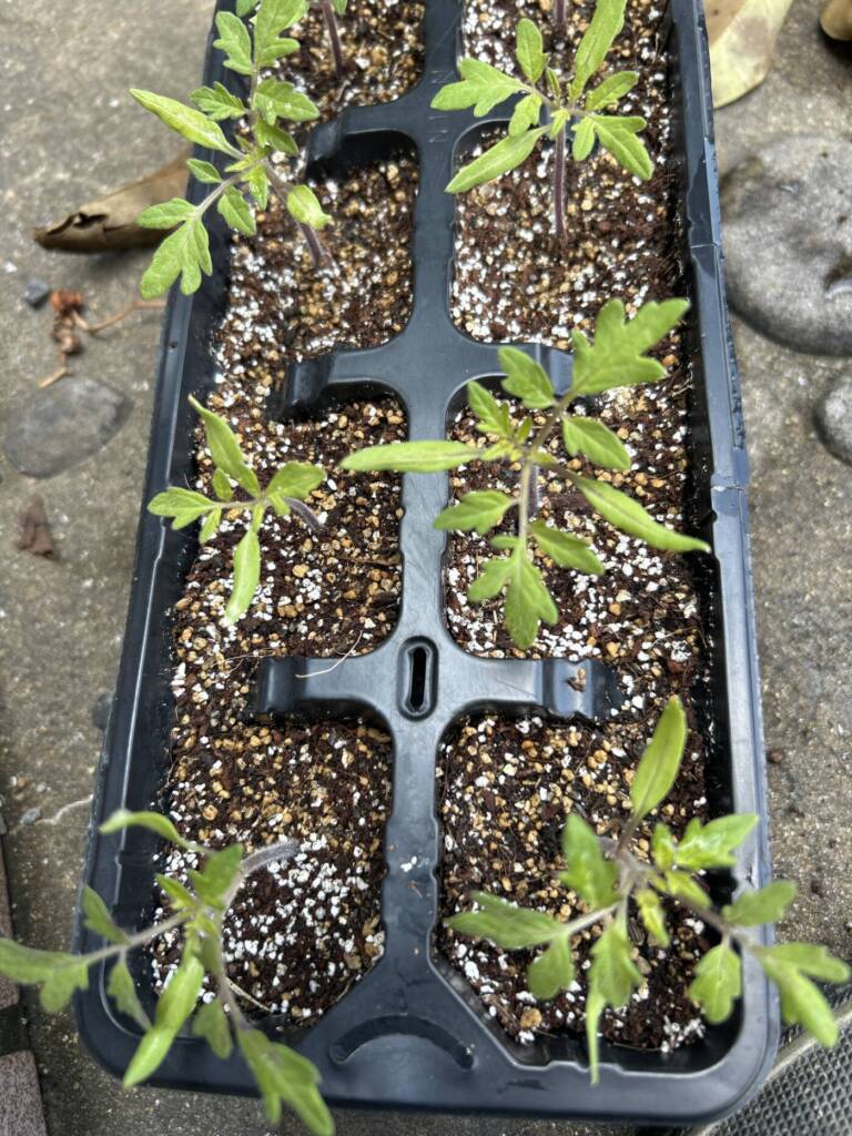 今年もミニトマト・中玉トマトの苗を育てています。間引くとかわいそうなので、1種ずつ育てることにしました。