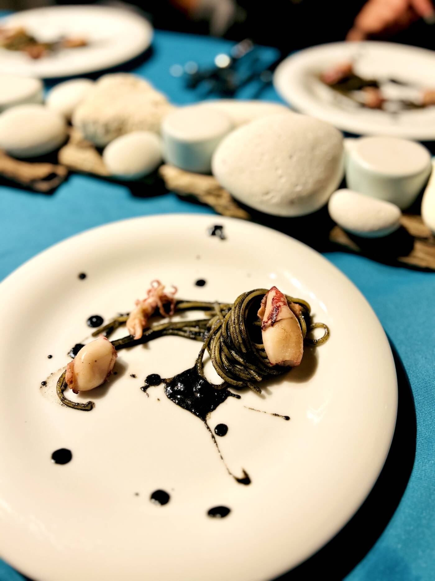 赤烏賊と水烏賊のイカ墨スパゲッティ。