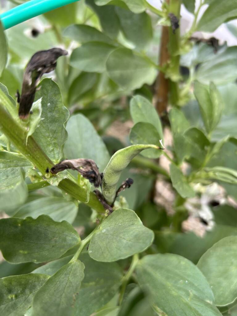 今年は初めてそら豆を育てます。豆の形になってきました。
